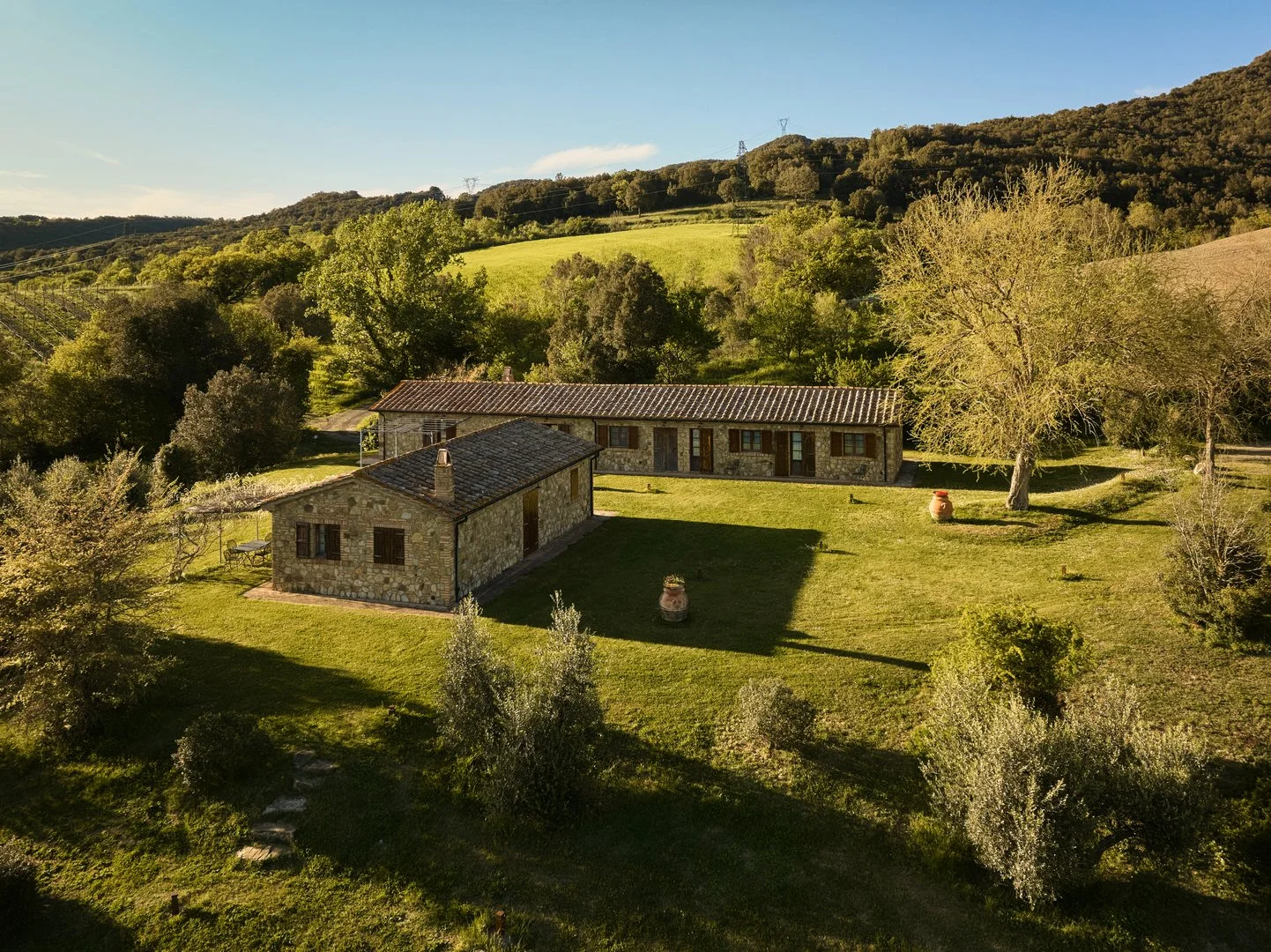 The Monterufoli Estate is located in between the Val di Cecina and Val di Cornia, in the southern part of the province of Pisa. It is immersed in more than a thousand hectares of unspoilt nature, secular trees, a plethora of thermal springs and enchanting vineyards, from which the Vermentino di Toscana IGT and the Poggio Miniera Val di Cornia DOCG selection is produced.